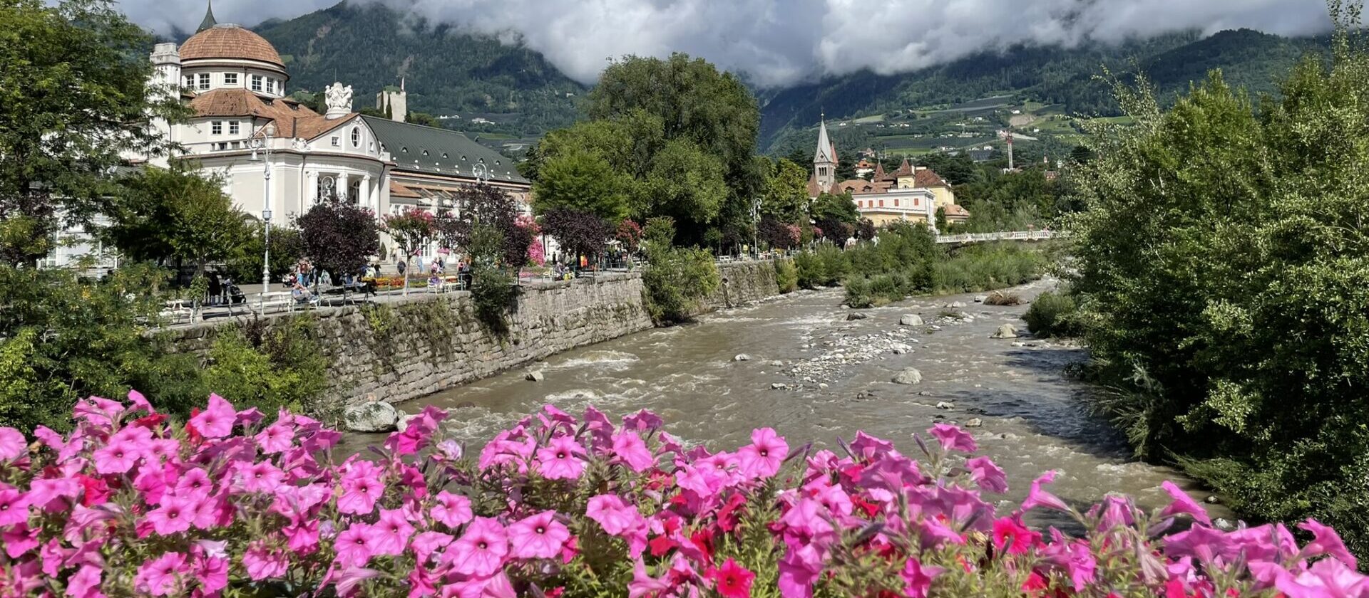 In het charmante Merano wacht je een warme ontvangst, omringd door geurige appelboomgaarden en een vleugje mediterrane sfeer, als dit niet het eindpunt van je transalp is, dan is het een perfecte tussenstop op weg naar het Gardameer.